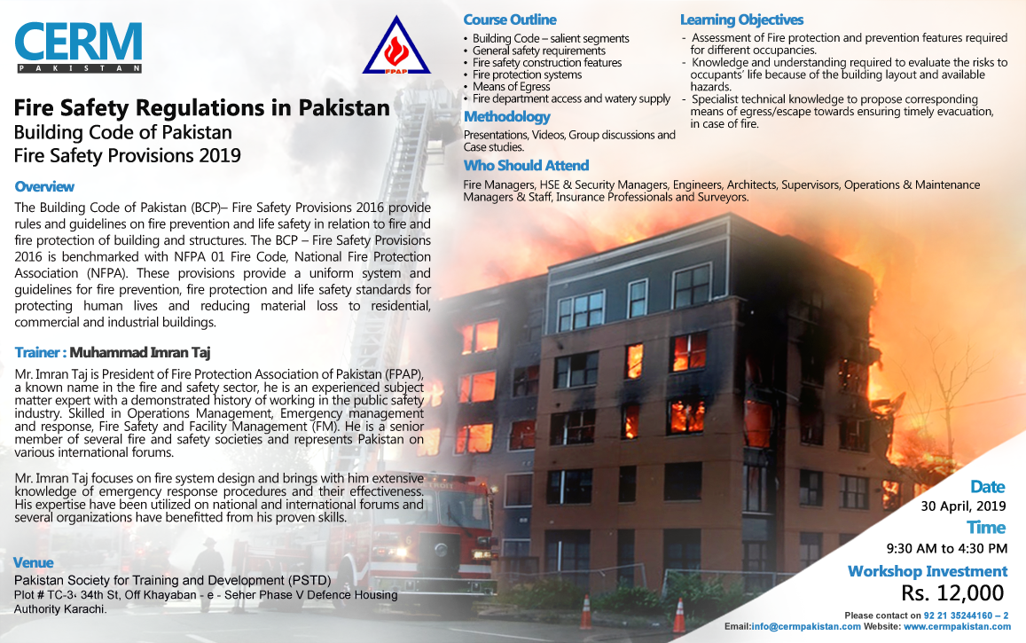 | 1 | Fire Safety Regulations in Pakistan: Building Code of Pakistan Fire Safety Provisions 2019 | 30 April 2019 |